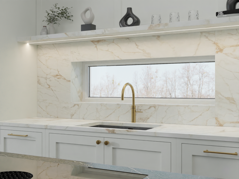 Elegant Marble Backsplash & Countertops – A seamless and luxurious touch that enhances the design.