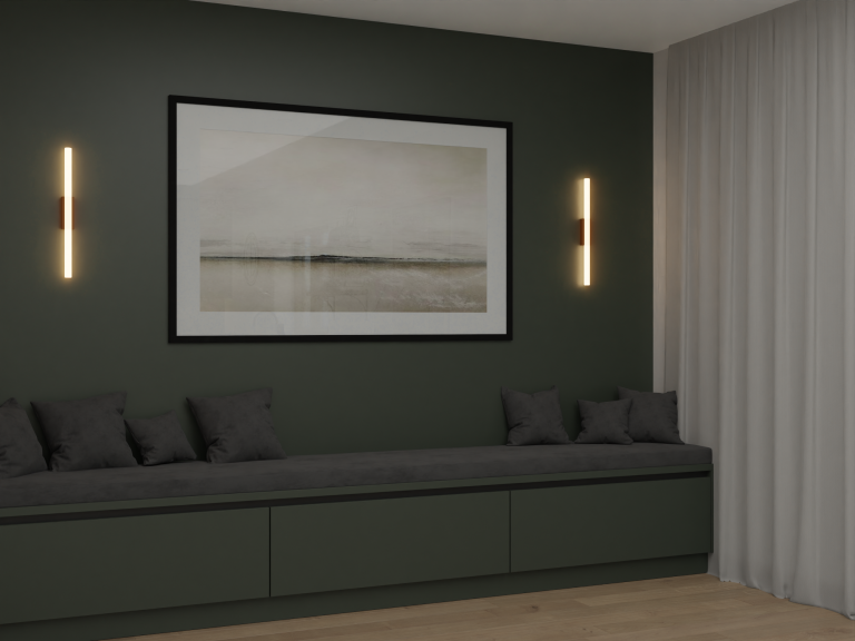 Integrated Appliances – Built-in ovens and seamless storage keep the space clutter-free.